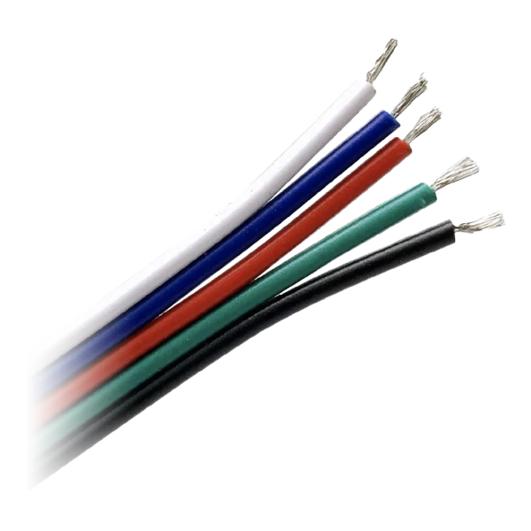 Five-core wire for LED RGBW strips with conductor area of 5x 0.35mm2 and lenght of 25m, necessary to supply power to the RGBW LED strip (white and colored light).