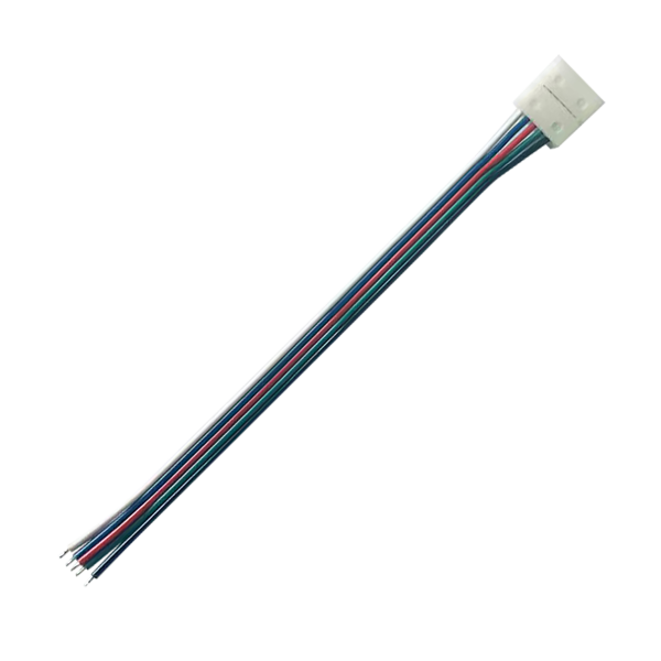 One-sided LED connector with a cable for 12 mm wide LED strips with max. 48V. This is a convenient solution for quickly connecting an RGBW LED strip (white and colored light) to a power supply unit, controller or other wiring.