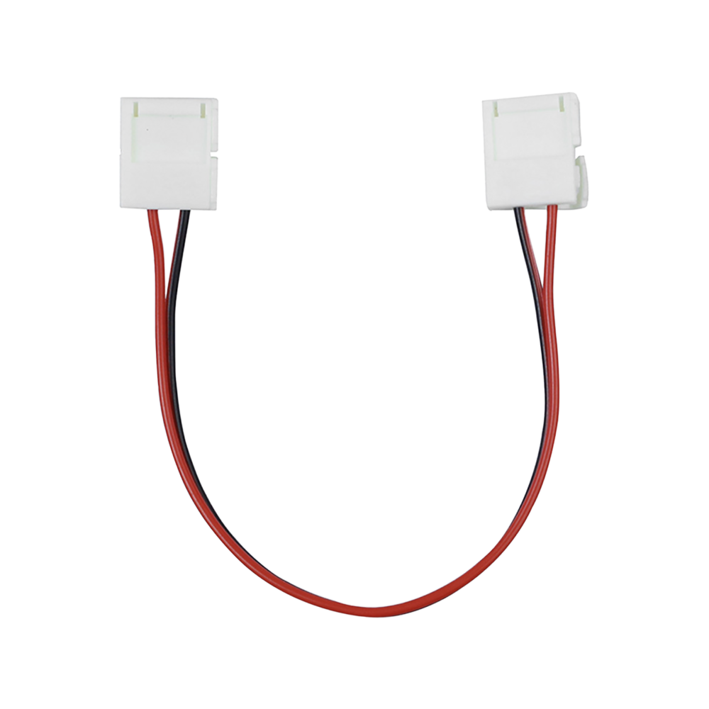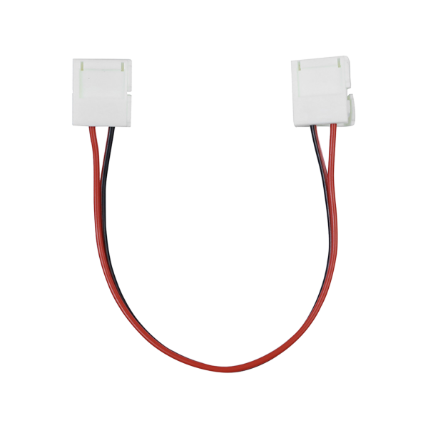Double-sided LED connector with a cable for 8 mm wide LED strips with max. 48V. This is a convenient solution for quickly connecting single-color LED strips without the soldering.