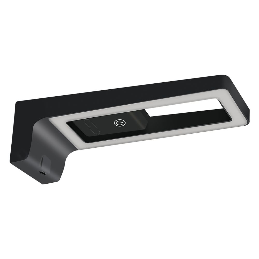 A single ARTUS LED under-cabinet lamp in black with 3W and a luminous flux of 225lm. The model emits light with a pleasant neutral colour of 4000K. It has a dimmable touch switch that adjusts the brightness of the light by holding the switch with your hand. The light also has a built-in USB C port (5V 2.4A), so you can easily charge other electrical devices such as your phone or tablet.