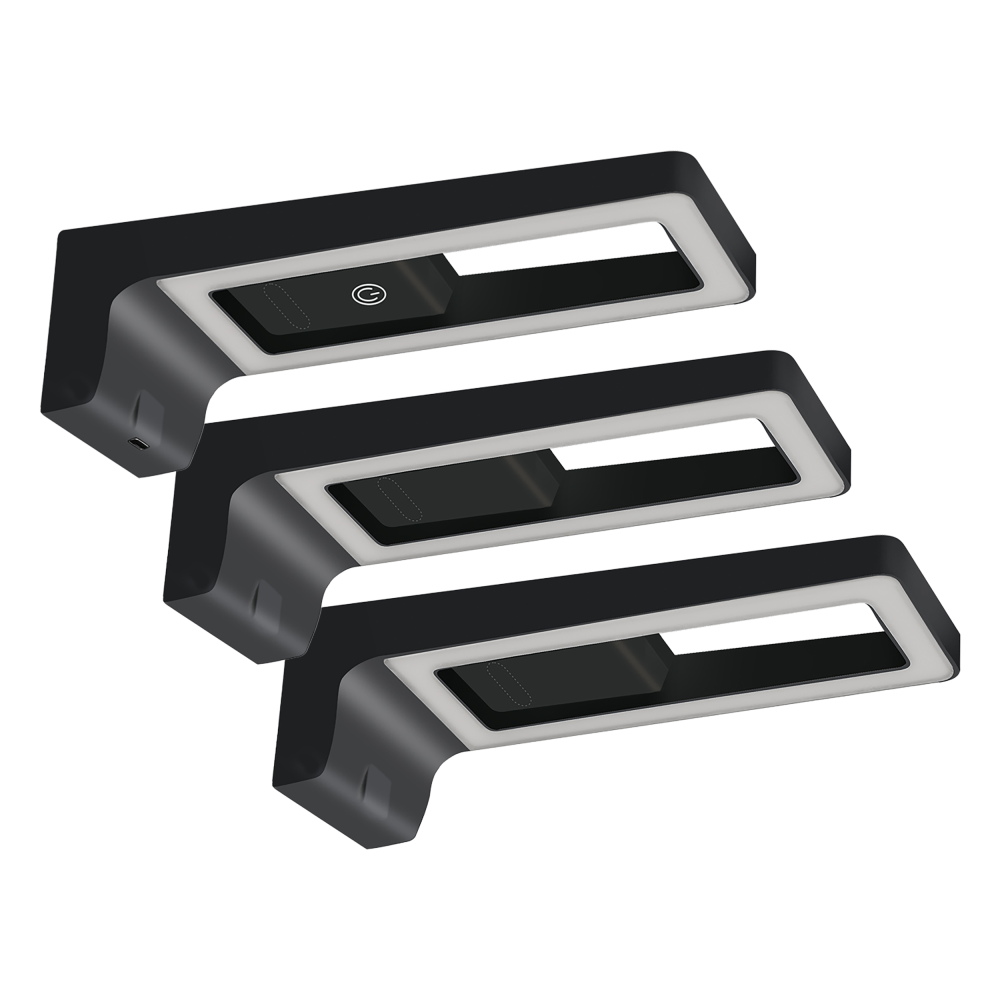 Set of 3 ARTUS LED under-cabinet lamps in black, 3W with a luminous flux of 225ml each. They emit light with a pleasant neutral colour of 4000K. One of the three lamps has a touch-sensitive switch, which controls the operation of the entire set and adjusts the brightness of the light by holding the switch with your hand. In addition, the light has a built-in USB C port (5V 2.4A), which makes it easy to charge other electrical devices such as a phone or tablet.
