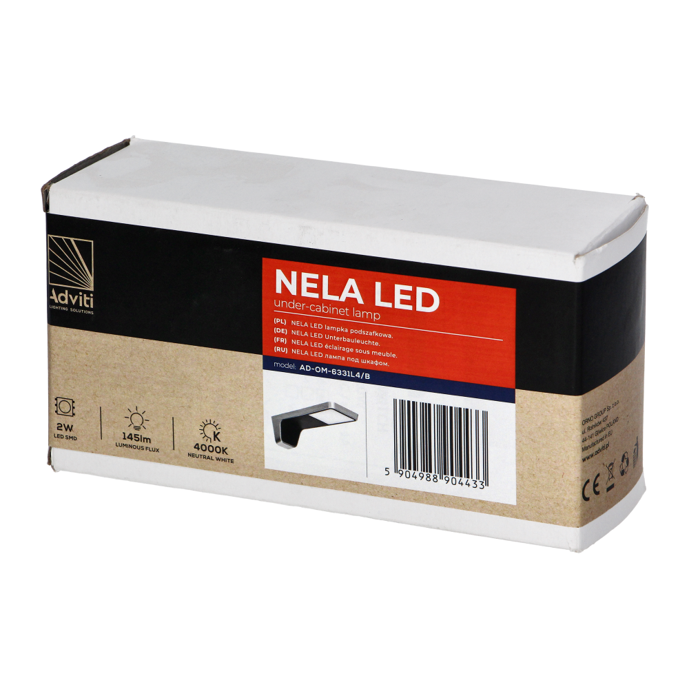NELA LED under-cabinet lamp, 2W, 145lm, 4000K, black