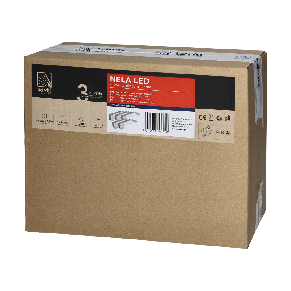 NELA set of 5 under-cabinet LED lamps, 4x2W+7.5W, 4000K, with USB, white