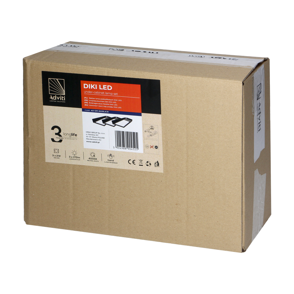 DIKI set of 3 under-cabinet LED lamps, 3x2W, 4000K, with touchless switch, black