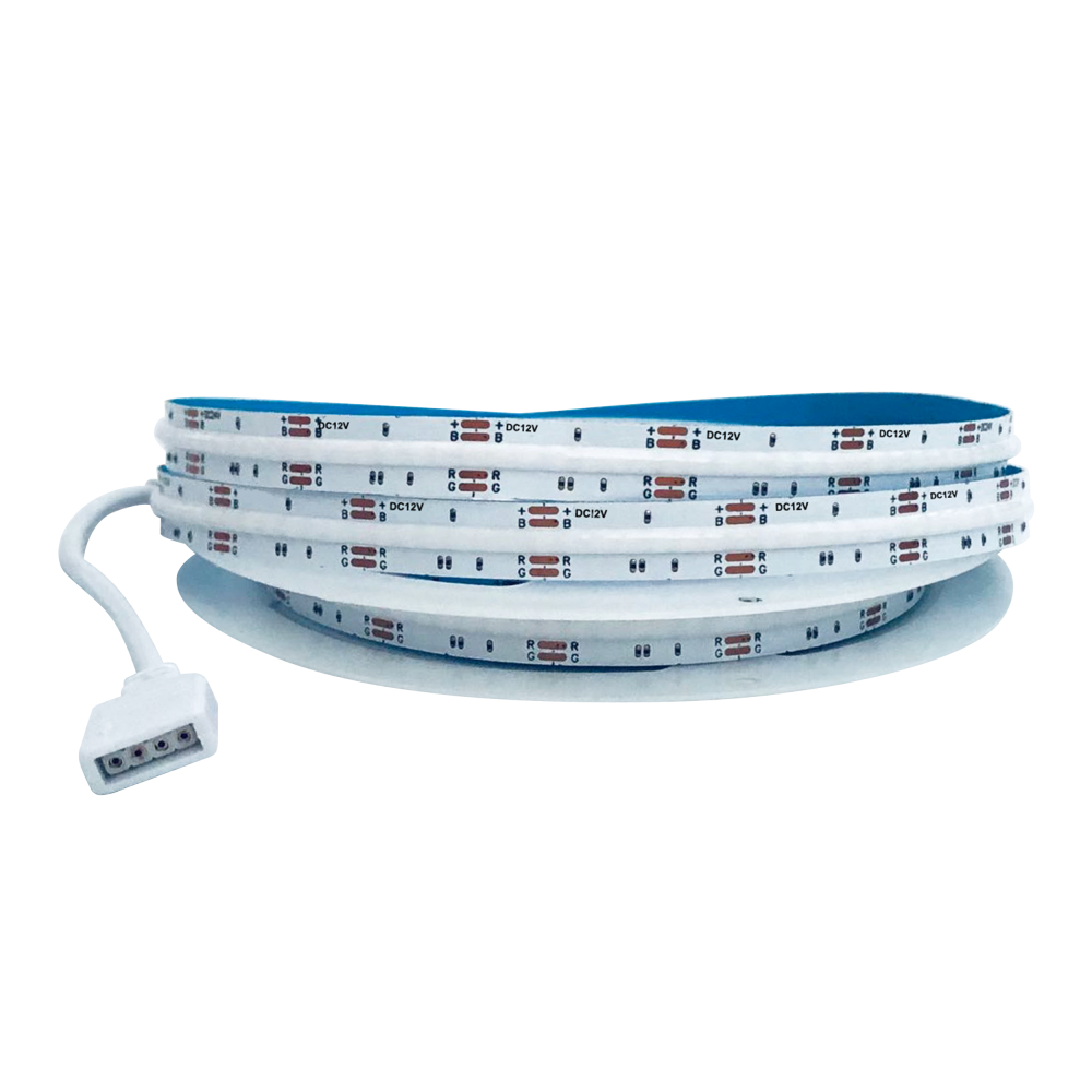 The band is equipped with 840 warm 3000K LED diodes per meter. Due to RGB it is easy to change the color of emitted light and the COB technology enables to obtain wider beam angle compared with traditional SMD diode. LED COB diodes are known for emitting smooth and homogenous light. Application of such a LED strip is economical and, on the other hand, efficient in terms of the amount of light generated. The usage is completely safe due to 12V DC supply voltage.
