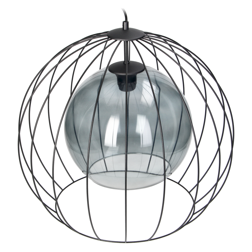 The DUNIA lamp series is a collection of lamps ideally suited to industrial arrangements. The metal reinforcement combined with a glass lampshade will fit perfectly into the kitchen or the living room. The lamps consist of two fashionable elements - a metal canopy in an industrial style and a glass spherical lampshade in graphite colouring. A version with three light sources is also available.