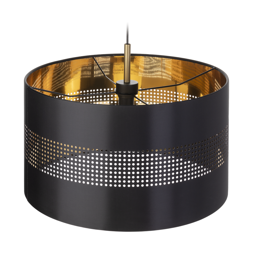 ALESSIO lamp is made in a modern style. The black lampshades made of Dutch fabric, which are covered with gold foil on the inside, an additional advantage are the laser-cut tiny holes in the shape of a square, which, letting the light through, create delicate patterns on the walls. A version with four light sources is also available.