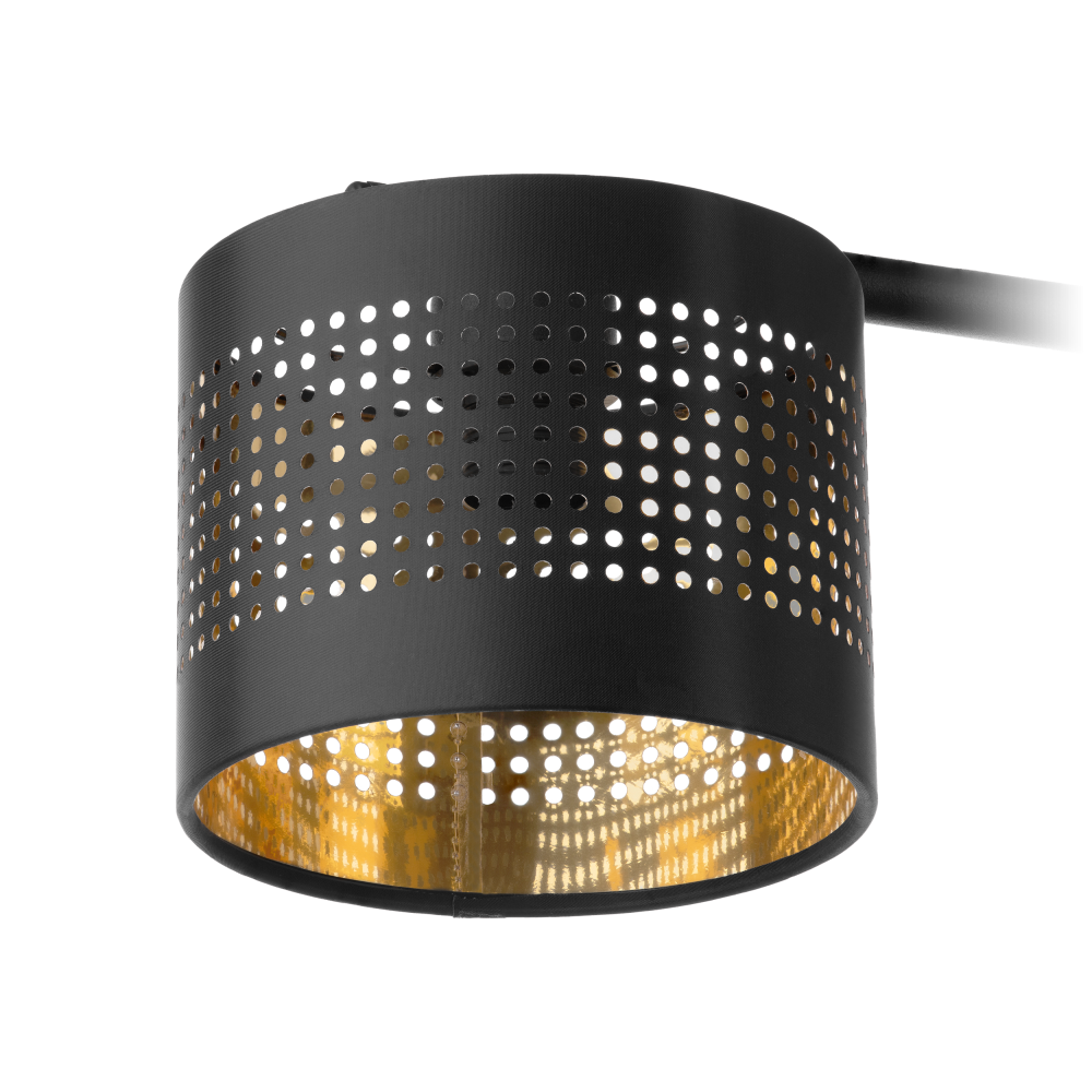 ALESSIO lamp is made in a modern style. The black lampshades made of Dutch fabric, which are covered with gold foil on the inside, nn additional advantage are the laser-cut tiny holes in the shape of a square, which, letting the light through, create delicate patterns on the walls. A version with one light source is also available.