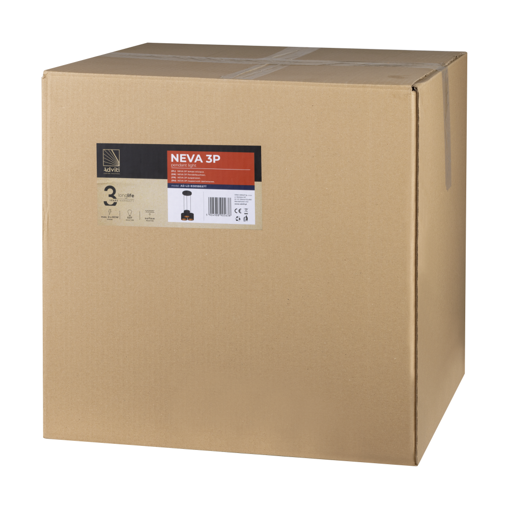 NEVA pendant lamp, max. power 3x60W, E27, black, round