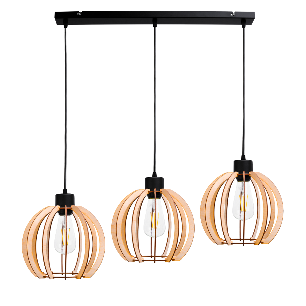 JUALA pendant lamp, max. power 3x60W, E27, black, wood