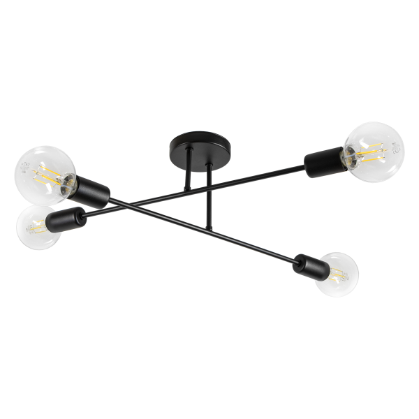 The SOLO 4P pendant light is a model that consists of a circular rosette and two crossbars with two luminaires on each - a total of 4 light sources can be accommodated in it. The entire lamp is finished in matt black. This makes the light look very elegant and modern. The rawness of the form makes the series a perfect match for both loft interiors with an industrial style and those maintained in a Scandinavian style.