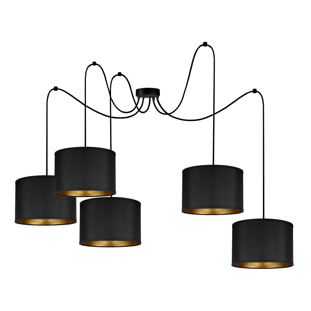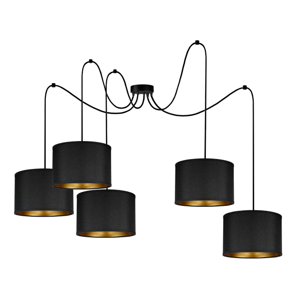 The KYLO 5P lamp is a pendant model with five places for light sources. The shades are set on a practical and easy to install circular rosette, providing intense illumination of the room. The light emitted by the lamp - depending on the type of bulb used - can be warm, soothing and pleasing to the eye or cool, just right for work.