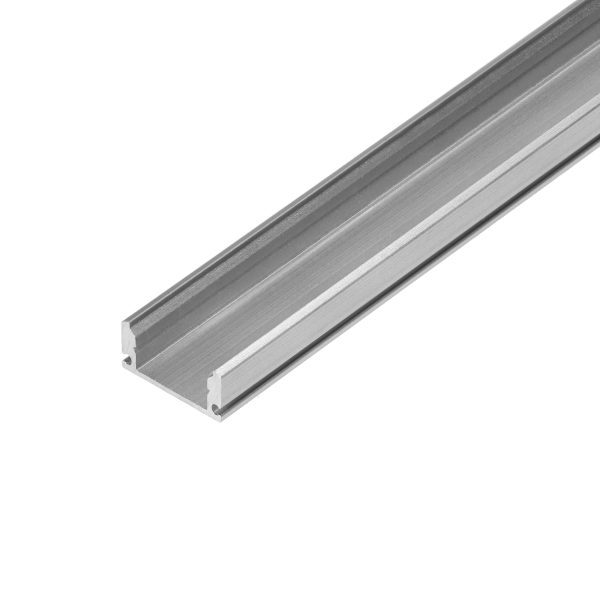 Silver aluminum surface mounted profile for LED strips. Used not only for room decoration but mainly for a LED strip protection. The profile fully manufactured from aluminum thanks to which heat is dissipated more effectively and the led strip does not overheat.