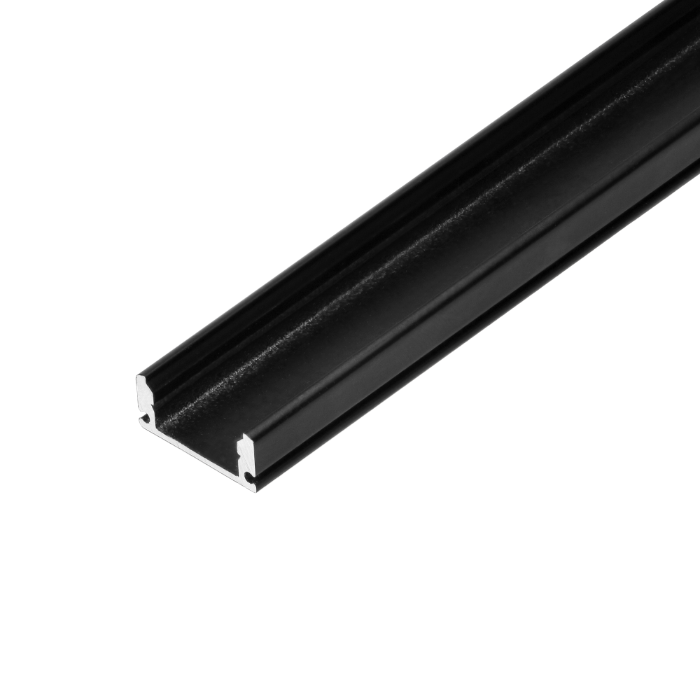 Black aluminum profile for LED strips, surface mounted. Used not only for room decoration but mainly for a LED strip protection. The profile fully manufactured from aluminum thanks to which heat is dissipated more effectively and the led strip does not overheat.
