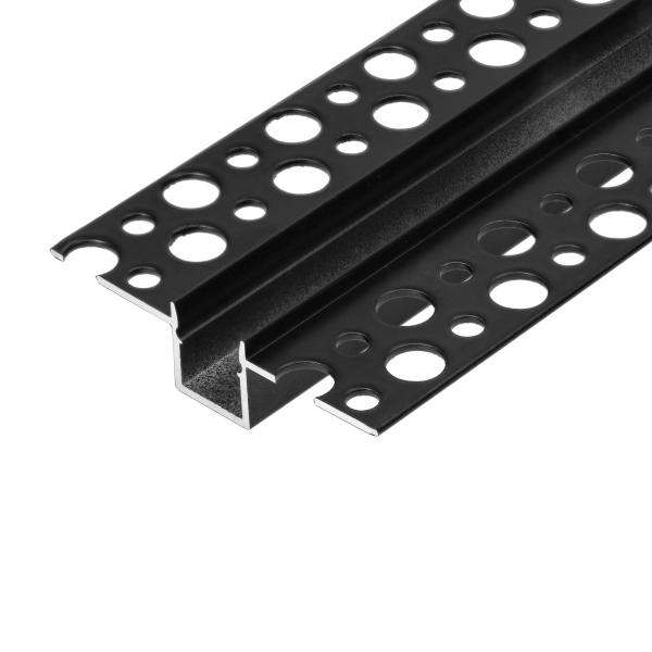 Black aluminum profile for LED strips, drywall recessed. Used not only for room decoration but mainly for LED strip protection. The profile fully manufactured from aluminum thanks to which heat is dissipated more effectively and the led strip does not overheat.