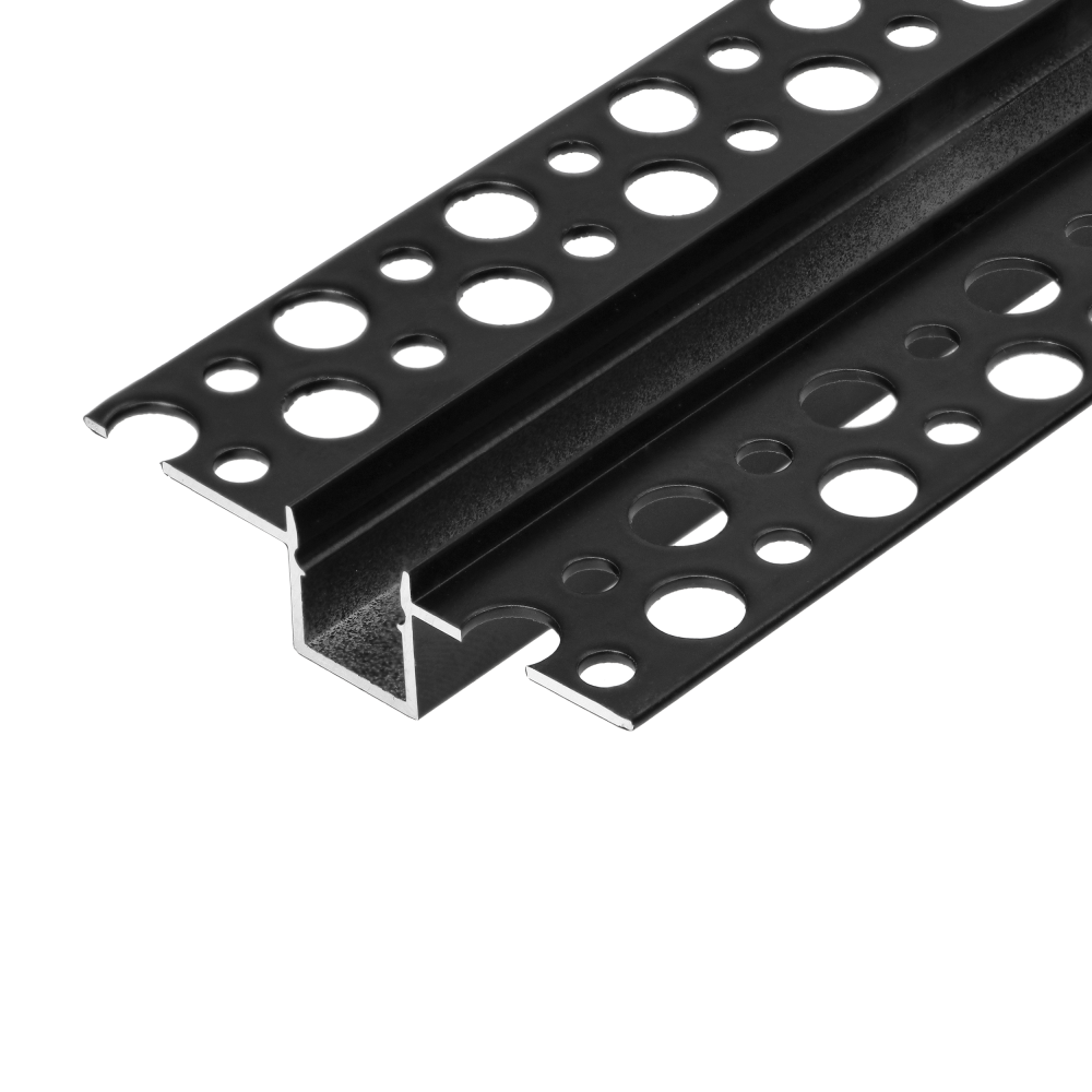 Black aluminum profile for LED strips, drywall recessed. The profile used not only for room decoration but mainly for a LED strip protection. The profile fully manufactured from aluminum thanks to which heat is dissipated more effectively and the led strip does not overheat.