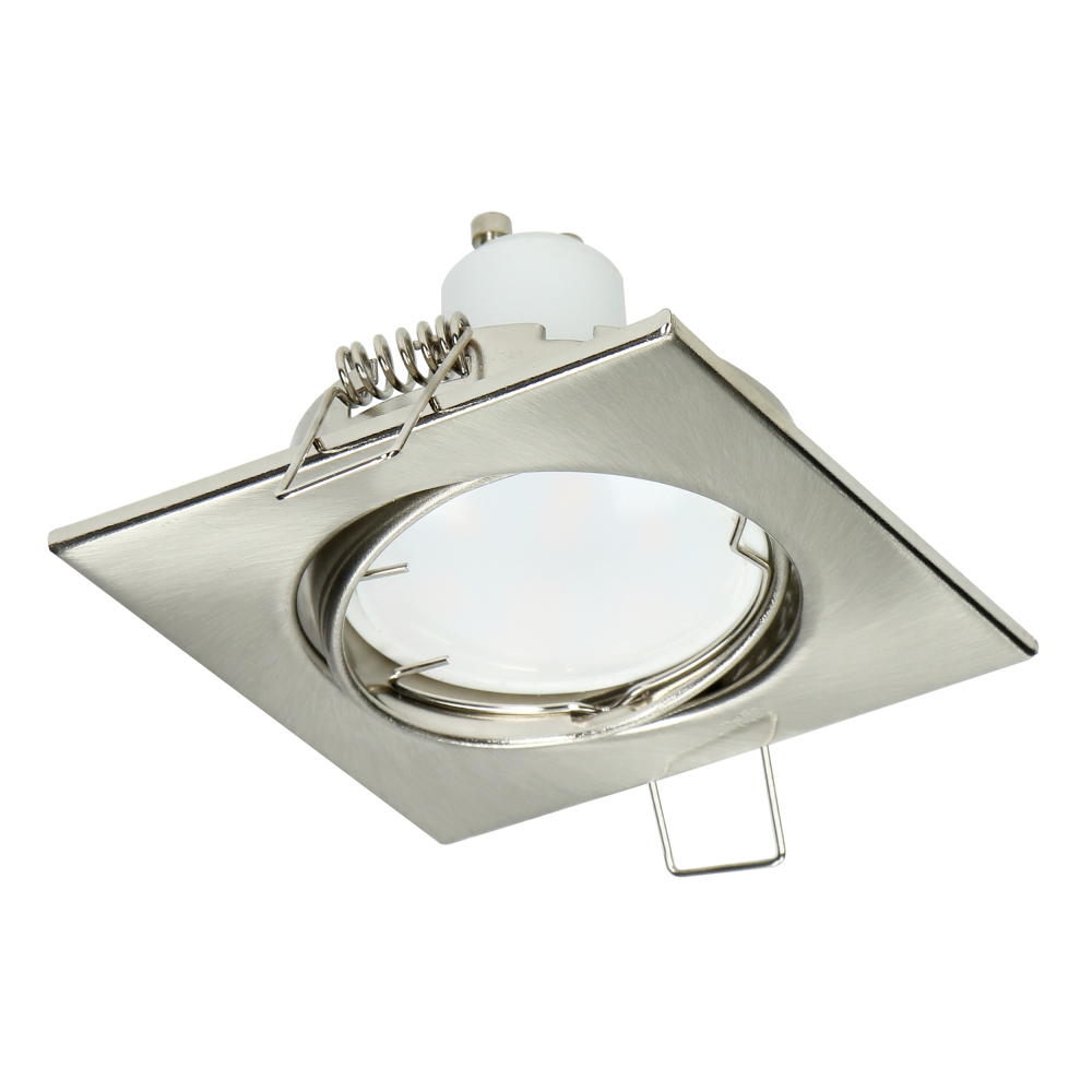 SUTRI SM a decorative, square frame for spotlight, that can be installed in suspended ceilings of cardboard-gypsum type. Its simple and minimalistic look is suitable for homes, residential buildings, hotels, offices, commercial areas, etc. The frame is suitable for GU10 and Gx5.3 base (not included) of max. rated power of 50W. The light direction is either fixed or adjustable (depending on the model). This decorative frame is made of steel and it is available in white, black and satin.