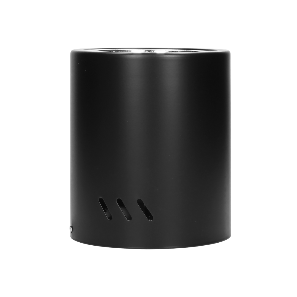 Surface-mounted downlight is a point light suitable for ceilings. It features both, minimalist and innovative design, which helps to highlight elements of modern residential and commercial interiors. The product is suitable for LED light sources or energy-saving bulbs with an E27 thread with a maximum power of 60W. This downlight is made of steel and is available in black colour.