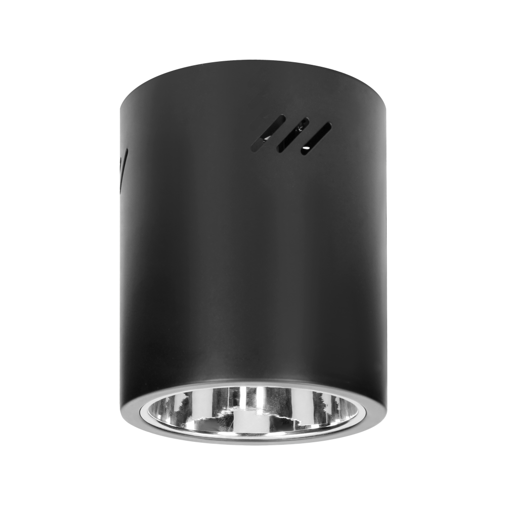 Surface-mounted downlight is a point light suitable for ceilings. It features both, minimalist and innovative design, which helps to highlight elements of modern residential and commercial interiors. The product is suitable for LED light sources or energy-saving bulbs with an E27 thread with a maximum power of 60W. This downlight is made of steel and is available in black colour.