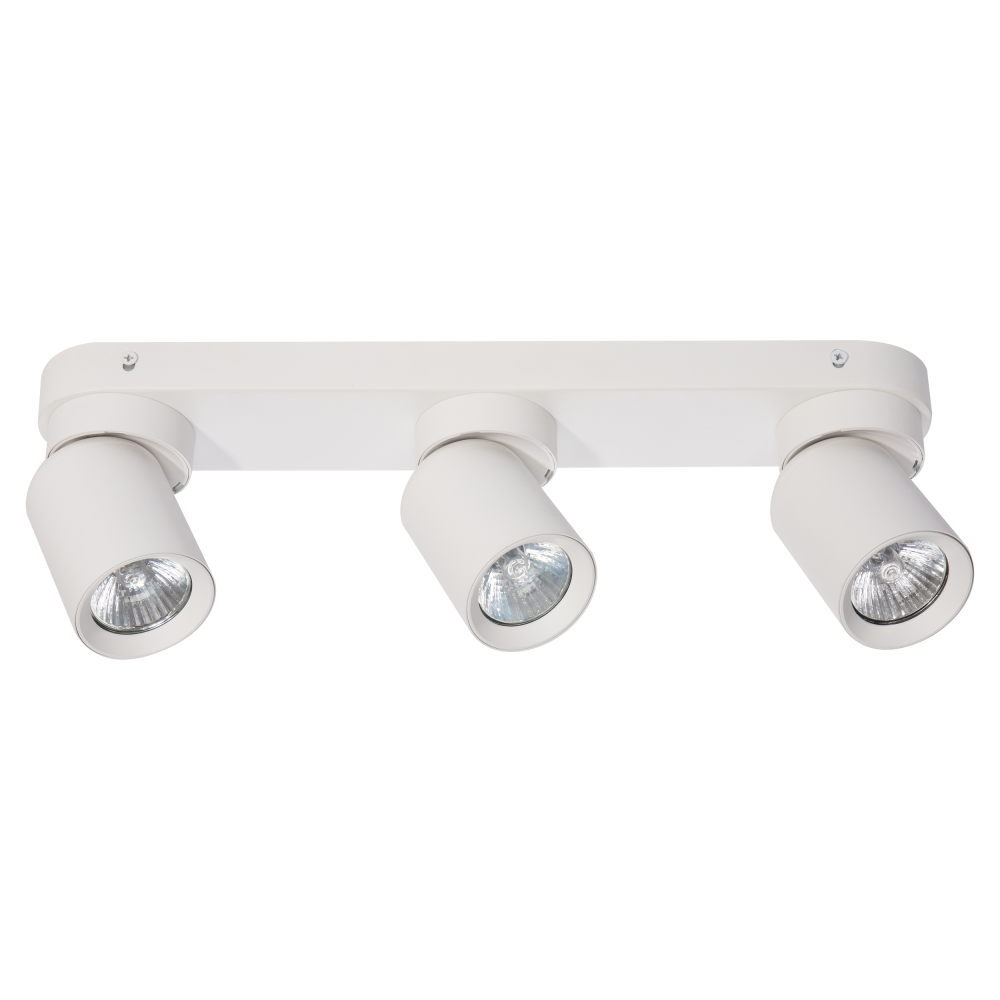 MALTA SP 3 is a movable wall and ceiling surface-mounted luminaire in white with an elongated base. It is suitable for three light sources with GU10 base and max. 12W LED (not supplied). The luminaire has a high resistance to mechanical damage IK09.