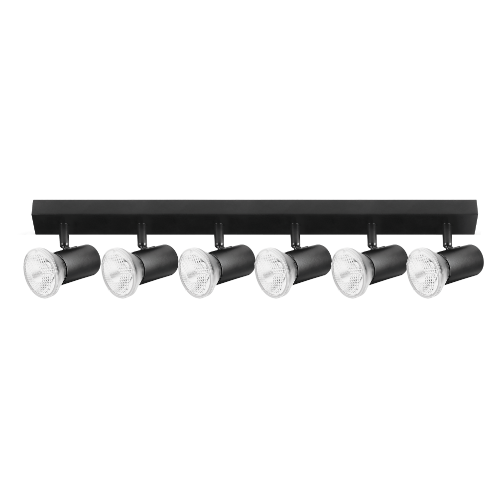 RIO SP6, is a six-point luminaire with movable heads, set on a long rectangular strip. The fixture is made of powder-coated aluminium in black. The luminaire is suitable for illuminating long corridors, and will look good centrally placed as the main point of light. The independently adjustable lampheads allow for intensive illumination of even large rooms, as desired - evenly or spot-on.