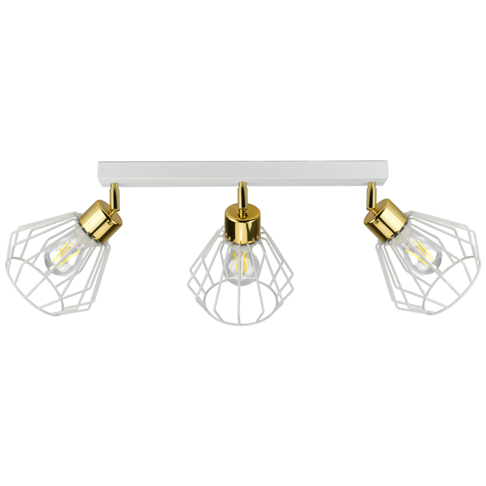 This metal hanging loft lamp from the Waya series, with three 60W light points, is a simple and effective lamp mounted on a strip, equipped with movable, independent lampshades. It will be perfect where we want to precisely direct the light beam. It fits perfectly into elegant, minimalist interiorarrangements, such as Scandinavian-style interiors. Thanks to the simple and elegant design, and the golden elements that break the white - it fits beautifully in modern spaces. It will discreetly emphasize the character of the room and provide a comfortable level of lighting. Due to the wide range of variants, WAYA loft lamps are a convenient choice in rooms or apartments where we want to install several different light sources. You can easily assemble such a set of hanging lamps, wall lamps and different configurations of individual lamps that will suit the chosen lighting concept. Subtle design, intuitive and easy assembly, solid construction and good quality materials enable long use, easy cleaning and convenient replacement of bulbs. The set includes Assembled lamp - all you have to do is mount the covers. Connection block Manual user instructions Bulbs are not included. Mounting pins should be purchased separately - depending on the type of ceiling on which the installation is planned.