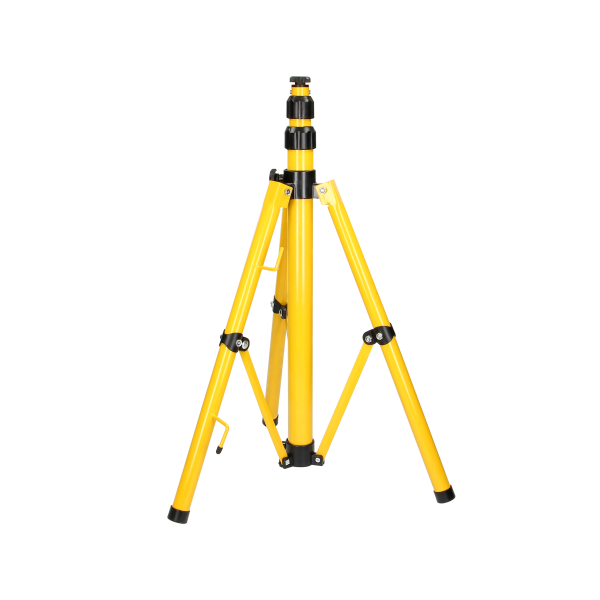 Adjustable, stable tripod, for LED floodlights and halogen lamps. Can be used with one light source. The base is a stable, extendable tripod. The tripod is based on a stable, fold-out tripod with handles, with which the power cable can be conveniently wound. Suitable for all lighting applications, from construction sites to photographic studios.