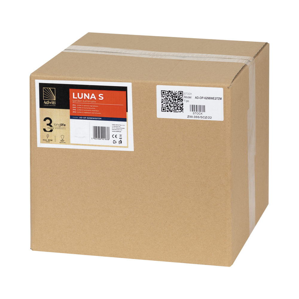 Wyjątkowa oprawa ogrodowa LUNA S w formie kuli stanowi przepiękną ozdobę świetlną i stworzy niepowtarzalny klimat w naszym ogrodzie. Oprawa przystosowana jest na jedną żarówkę z gwintem E27, o maksymalnej mocy 40W (brak w zestawie). Zastosowanie wymiennego źródła światła pozwala każdemu użytkownikowi na indywidualny dobór rodzaju żarówki i na dostosowanie barwy światła do własnych preferencji. Ze względu na wyższą klasę szczelności (IP44), lampa przeznaczona jest przede wszystkim do stosowania na zewnątrz – w ogrodach, altanach, na balkonach i tarasach. Można jednak stosować ją również wewnątrz jako oświetlenie dekoracyjne, np. w hotelach czy salach bankietowych. LUNA wykonana jest z solidnego tworzywa sztucznego w kolorze białym, które doskonale zniesie nawet trudne warunki pogodowe oraz przypadkowe podlewanie wodą. Użyty materiał sprawia również, że konserwacja i czyszczenie lampy nie stanowi problemu. Produkt można zamontować na 3 sposoby: jako lampa wolnostojąca, wbić w luźne podłoże za pomocą dołączonej do zestawu szpilki lub przytwierdzić do podłoża twardego stosując dołączone do zestawu wkręty i płytkę montażową. Oprawa zasilana jest sieciowo i posiada kabel o długości 300 cm zakończony wtyczką. Średnica kuli wynosi 30 cm. Produkt wyprodukowany w Polsce.