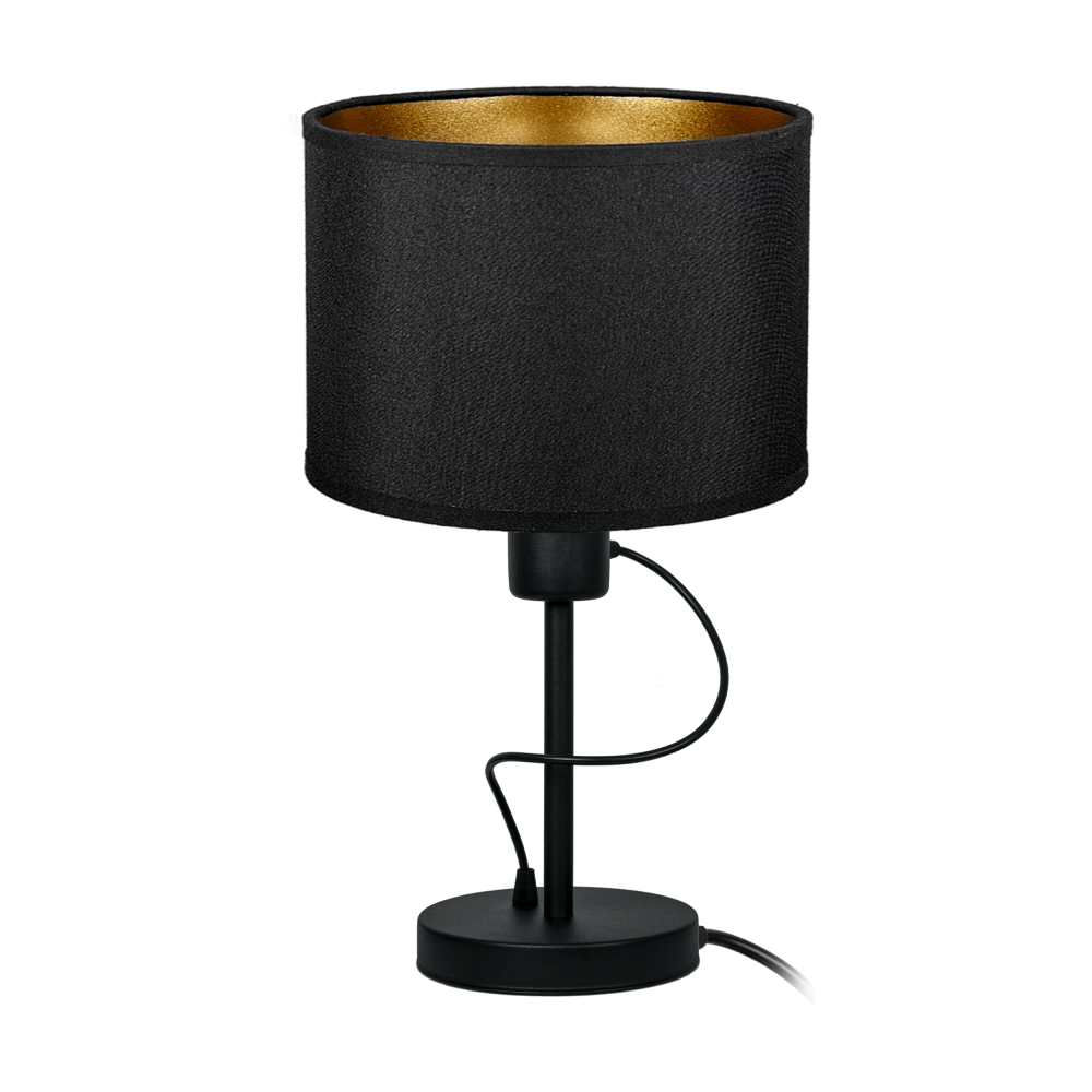 Cylindryczna lampa w kolorach czerni i złota jest eleganckim i nowoczesnym dodatkiem do każdego pomieszczenia. Jej prosta forma składa się z matowej, czarnej ramy, która jest ozdobiona złotymi akcentami. Złote wykończenie klosza odbija światło i dodaje lampie luksusowego wyglądu i przyciągają uwagę.