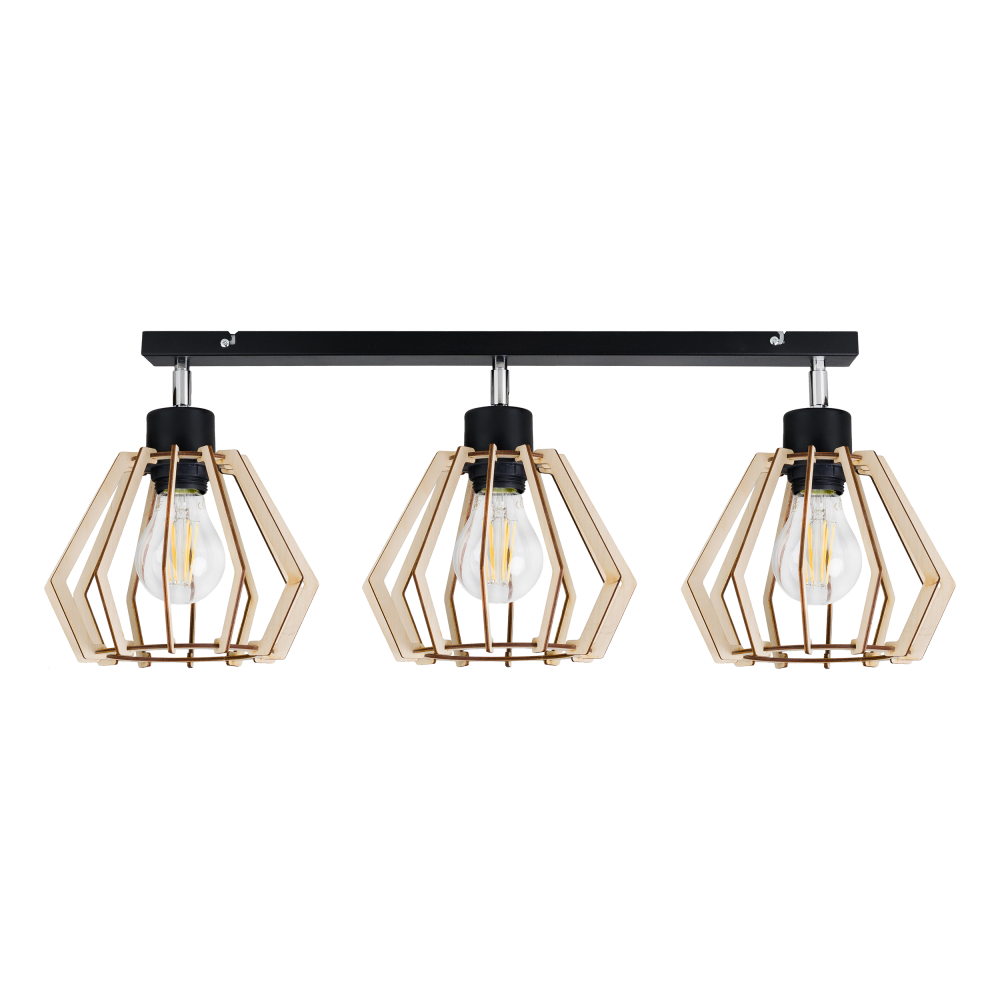 SOLIN to seria lamp dla fanów finezyjnych, drewnianych akcentów w prostym stylu. Nowoczesne formy z nostalgiczną nutą retro zyskują ciągle na popularności. Dodatkowo zainteresowanie wnętrzami loftowymi i industrialnym stylem aranżacji wnętrz również nie słabnie. Jakie wybrać do nich oświetlenie? SOLIN, to linia lamp zaprojektowana właśnie po to, aby na to pytanie odpowiedzieć. W skład serii wchodzą lampy ścienno-sufitowe oraz kinkiety, które można łączyć - w zależności od liczby źródeł światła potrzebnej w danym miejscu, wysokości ich ulokowania oraz zamierzonego efektu. Stwórz własny zestaw i ciesz się naturalnym drewnem w towarzystwie matowo-czarnych wykończeń. Wszystkie oprawy przystosowane są do źródeł światła E27, o maksymalnej mocy 60W. Ścienno-sufitowa lampa z serii SOLIN, z trzema kloszami, zamontowanych na jednym poziomie, to proste i zarazem eleganckie połączenie czerni, drewna i geometrycznych form. Trzy wymienne źródła światła (żarówki należy dokupić osobno) w zależności od wyboru ich temperatury kolorystycznej - dodadzą przytulności, wyeksponują dekoracyjną wnękę, doświetlą regał lub uprzyjemnią pracę w domowym gabinecie. Metalowa obudowa i drewniane klosze bez problemu wpisują się w nawet zdecydowaną kolorystykę ścian i wykończeń, a możliwość wyboru między kilkoma modelami lamp w obrębie serii sprawia, że bez kłopotów dobierzesz odpowiednią liczbę punktów świetlnych.