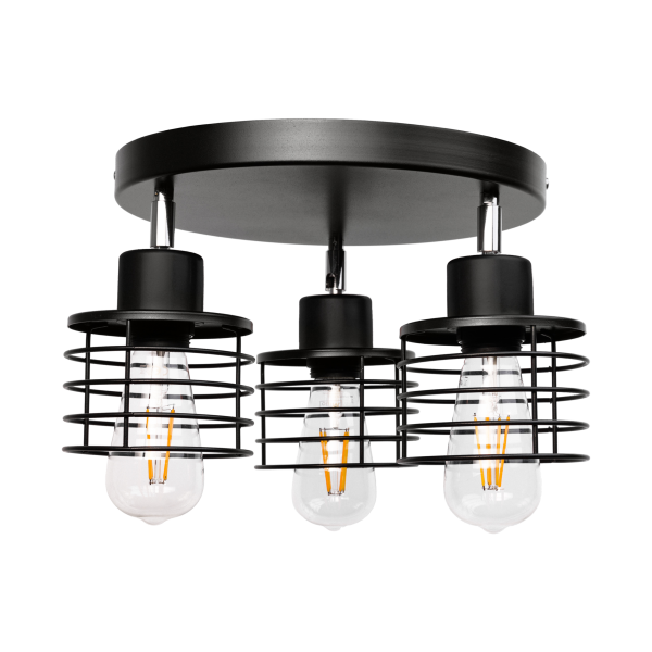 ISLA to seria prostych, a zarazem niebanalnych lamp, wykonana z metalu z czarnym, półmatowym wykończeniem. Poszczególne lampy w serii mają różne konfiguracje i liczby punktów świetlnych, ale wszystkie łączą efektowne klosze. Koszyki chroniące żarówkę złożone są z czterech metalowych obręczy, o takiej samej średnicy, całość stabilizują symetrycznie rozmieszczone pręty. Wszystkie produkty z tej serii przystosowane są do żarówek typu E27 o maksymalnej mocy 60W każda, które nie są dołączone do zestawu. Na zdjęciu żarówka filamentowa - to połączenie prezentuje się bardzo ciekawie, zwłaszcza, jeżeli budujemy atmosferę pomieszczenia światłem właśnie. Zachęcamy również do eksperymentowania z temperaturą barwową światła. Trójpunktowa oprawa ISLA, to lampa złożona z trzech kloszy osadzonych na okrągłej rozecie. Głowice lampy są ruchome, co pozwala precyzyjnie skierować źródło światła w pożądanym kierunku. Wszystkie punkty świetlne zamontowane są na jednej wysokości. ISLA nadaje się do domowych lub biurowych pomieszczeń. Lampa przystosowana jest do montażu sufitowego oraz ściennego. Sprawdź też inne lampy z serii ISLA - kinkiety, lampy dwu- i trójpunktowe, z rozetą lub montowane na listwie - i wybierz te, które najlepiej nadają się do Twojego domu.
