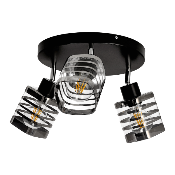 SIENA 3P E27, oprawa ścienno-sufitowa, max. 3x60W, czarna, podstawa okrągła, ruchome głowice lampy, jeden poziom