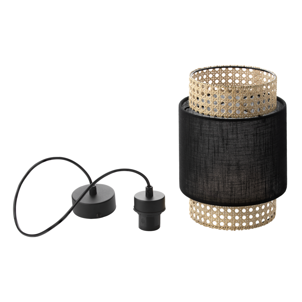 Połączenie materiałowego abażuru, wraz z rattanem tworzy jednolitą spójność, która przyozdobi każde wnętrze. Model posiada miejsce na jedno źródło światła o trzonku E27 i maksymalnej mocy 60W.