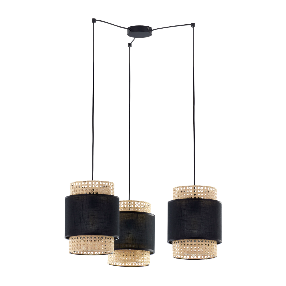 Połączenie materiałowego abażuru, wraz z rattanem tworzy jednolitą spójność, która przyozdobi każde wnętrze. Model posiada miejsce na trzy źródła światła o trzonku E27 i maksymalnej mocy 60W.