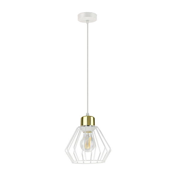 Wisząca lampa loftowa z serii Waya, z pojedynczym punktem świetlnym o maksymalnej mocy 60W. Dekoracyjny żyrandol w kolorach bieli i złota, doskonale sprawdzi się tam, gdzie zależy nam prostym, "czystym" efekcie wystroju wnętrza. Druciany klosz idealnie podkreśli atuty przestronnego salonu, jak i wydobędzie z cienia wybrane elementy wystroju. Dzięki prostemu i eleganckiemu designowi pięknie komponuje się w nowoczesnych wnętrzach, polecamy go szczególnie do modnych aranżacji w stylu skandynawskim. Dzięki złotym akcentom dyskretnie podkreśli charakter pomieszczenia i zapewni odpowiedni poziom światła. Lampy WAYA nie wymagają samodzielnego składania poszczególnych ich elementów - są już gotowe do powieszenia. Dodatkowo należy wyposażyć się w odpowiednie żarówki oraz kołki montażowe. Ze względu na duży wybór wariantów, metalowe lampy loftowe WAYA, są wygodnym rozwiązaniem w pomieszczeniach i mieszkaniach, w których zależy nam na zamontowaniu kilku różnych źródeł światła. Z łatwością skompletujesz taki zestaw lamp wiszących, kinkietów i konfiguracji poszczególnych kloszy, jaki będzie odpowiadał wybranej koncepcji wystroju. Bez problemu możesz również regulować wysokość zawieszenia konkretnych lamp, co sprawia, że WAYA idealnie nada się do oświetlenia stołu lub blatu. Subtelny projekt, intuicyjnie łatwy montaż oraz solidna konstrukcja, wykonana z dobrej jakości materiałów, umożliwia długie użytkowanie, łatwe utrzymanie czystości i wygodę wymiany żarówek. W zestawie znajdziesz: Instrukcję obsługi Kostkę przyłączeniową Kompletną lampę (montujesz jedynie osłonę) - żarówki nie są częścią zestawu. Zestaw nie zawiera też kołków montażowych - należy wybrać indywidualnie, w zależności od wymagań konkretnego sufitu.