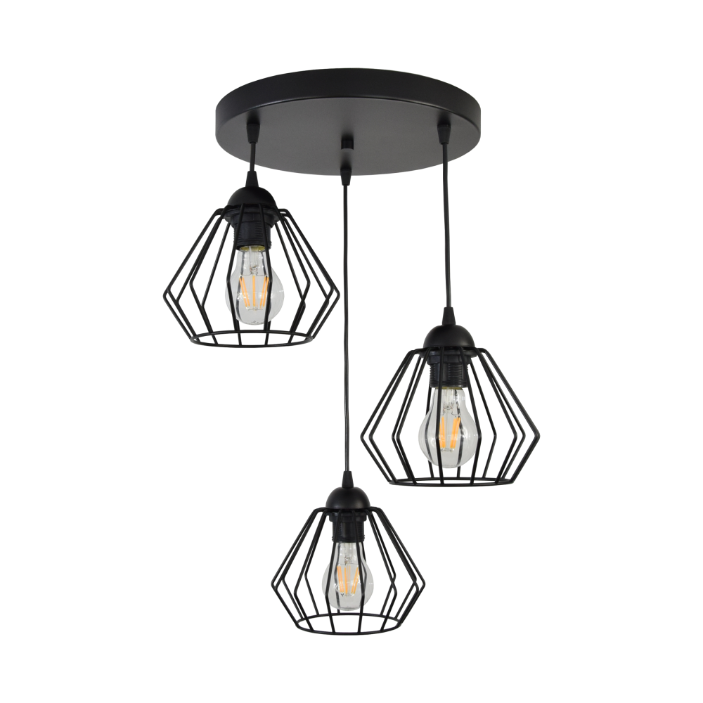 WAYA to lampa wisząca przystosowana na 3 żarówki z gwintem E27 o maksymalnej mocy świecenia 60W każda (brak w zestawie). Zastosowanie wymiennego źródła światła pozwala każdemu użytkownikowi na indywidualny dobór rodzaju żarówki i na dostosowanie jej kształtu oraz barwy światła do własnych preferencji. Lampa utrzymana jest w stylu loftowym, nowoczesnym i doskonale wkomponuje się w pomieszczenia proste i minimalistyczne, w których dominują cegła czy beton. Klosze lampy mają formę ażurową, która sprawia, że światło rozpraszane jest równomiernie, a nie punktowo. Poszczególne klosze lampy rozmieszczone są na różnych wysokościach, dzięki czemu uzyskujemy ciekawy efekt wizualny. Lampa należy do serii oświetleniowej WAYA, w której znajdziemy też lampy wiszące krótkie i długie, lampy sufitowe na listwie oraz kinkiety. Elementy lampy wykonane są z metalu malowanego proszkowo na kolor czarny. Produkt nadaje się do montażu sufitowego, natynkowego.
