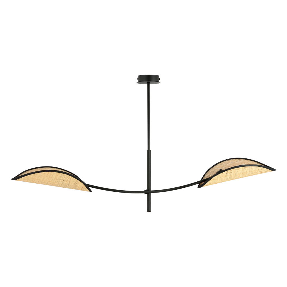 PETALO to lampa wisząca przystosowana na 2 żarówki z gwintem E14, o maksymalnej mocy 40W każda (brak w zestawie). Zastosowanie wymiennego źródła światła pozwala każdemu użytkownikowi na indywidualny dobór rodzaju żarówki i na dostosowanie jej kształtu oraz barwy światła do własnych preferencji. Swoim wyglądem lampa do złudzenia przypomina płatek lub liść, dlatego będzie mocnym akcentem dekoratorskim w każdym pomieszczeniu. Taka lampa zada wyjątkowego szyku, wniesie do wystroju oryginalność i elegancję. Produkt wykonany jest z ratanu, który uznawany jest obecnie za bardzo designerski surowiec idący w parze z modą na naturalny wystrój pomieszczeń. Dodatkowo jest lekki i łatwy w konserwacji. Korpus lampy wykonany jest ze stali malowanej proszkowo na kolor czarny. Produkt nadaje się do montażu natynkowego w pomieszczeniach suchych. Wyprodukowano w Polsce.