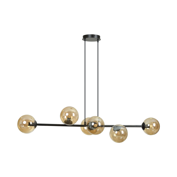 LETO to lampa wisząca przystosowana na 6 żarówek z gwintem E14, o maksymalnej mocy 40W każda (brak w zestawie). Zastosowanie wymiennego źródła światła pozwala każdemu użytkownikowi na indywidualny dobór rodzaju żarówki i na dostosowanie jej barwy światła do własnych preferencji. Pomimo swojej prostej formy, lampa będzie mocnym akcentem dekoratorskim w każdym pomieszczeniu. Zastosowane materiały – czarny stalowy korpus oraz klosze z przezroczystego szkła o złotym odcieniu – nadają lampie bardzo futurystycznego sznytu. Produkt nadaje się do montażu natynkowego w pomieszczeniach suchych. Wyprodukowano w Polsce.