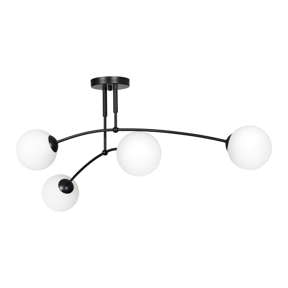 MONZA to lampa wisząca przystosowana na 4 żarówki z gwintem E14, o maksymalnej mocy 40W każda (brak w zestawie). Zastosowanie wymiennego źródła światła pozwala każdemu użytkownikowi na indywidualny dobór rodzaju żarówki i na dostosowanie jej kształtu oraz barwy światła do własnych preferencji. Lampa ma prostą, minimalistyczną formę, która odpowiednia będzie do nowoczesnych wnętrz, również tych utrzymanych w bardzo popularnym stylu skandynawskim. Korpus lampy wykonany jest ze stali lakierowanej na kolor czarny, natomiast kuliste klosze zrobione są z mlecznego, białego szkła. Produkt nadaje się do montażu natynkowego w pomieszczeniach suchych. Wyprodukowano w Polsce.