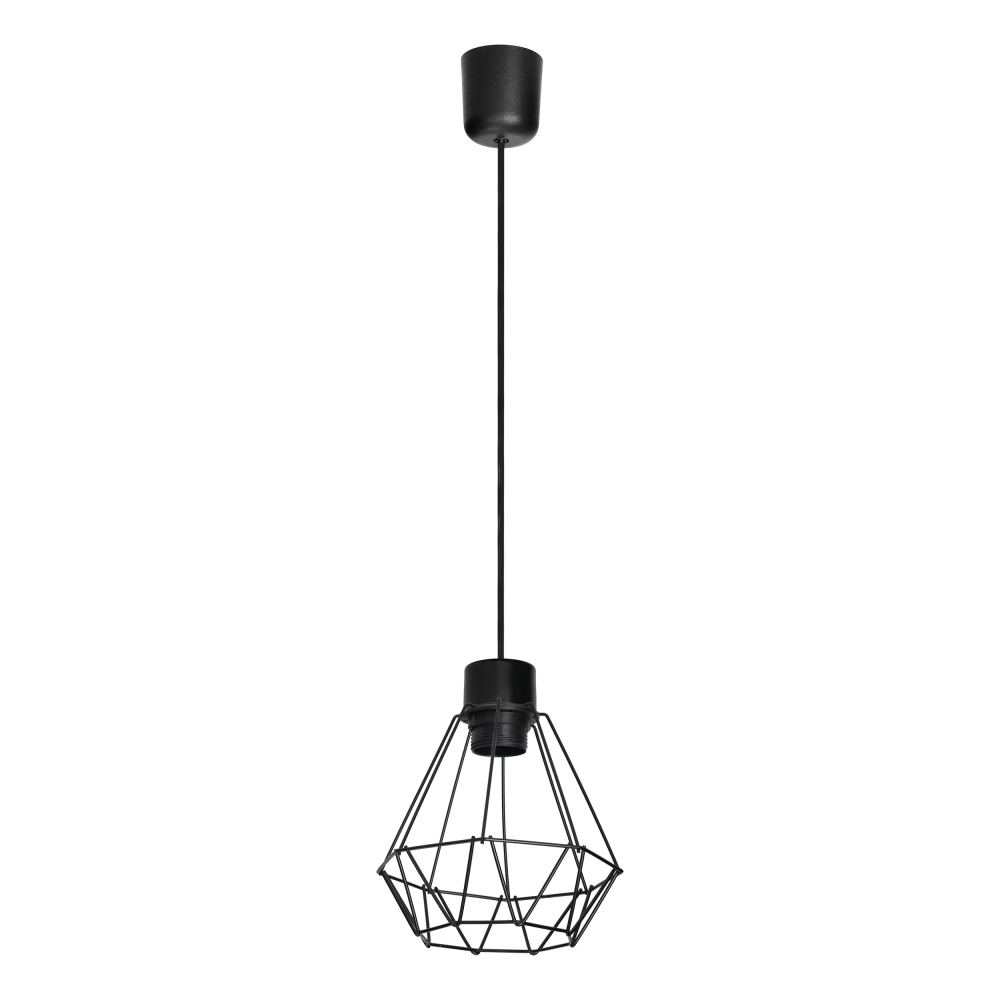 Jednopunktowa lampa wisząca CUBO, to wykonana z jakościowych materiałów klasyczna już lampa z drutu. Posiada nowoczesny, geometryczny klosz, który nie tylko dodaje charakteru każdemu pomieszczeniu ale - mimo lekkiej optycznie konstrukcji - zabezpiecza też źródło światła przed ewentualnymi uszkodzeniami mechanicznymi. CUBO będzie dobrym wyborem zarówno jako główne górne oświetlenie pomieszczenia, jak i jako punktowe doświetlenie kuchennego stołu, blatu roboczego czy biurka. Świetnie prezentuje się z filamentowymi, dekoracyjnymi żarówkami. Umożliwia tworzenie ciekawych aranżacji z domową zielenią lub sezonowymi dekoracjami. Sam w sobie stanowi nieoczywisty, geometryczny akcent w minimalistycznych wnętrzach. Długość przewodu, to około 60 cm, z możliwością regulacji. Oprawa CUBO przystosowana jest do źródła światła o mocy 60W i gwincie E27. Źródło światła należy dokupić osobno. Całość wykończona jest w kolorze czarnym.