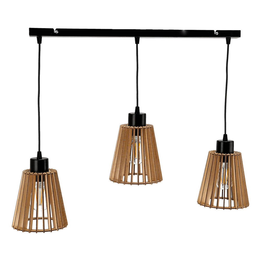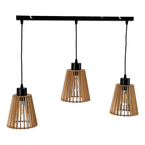 DELOS 3P E27, lampa wisząca, max. 3x60W, czarna, drewno, listwa