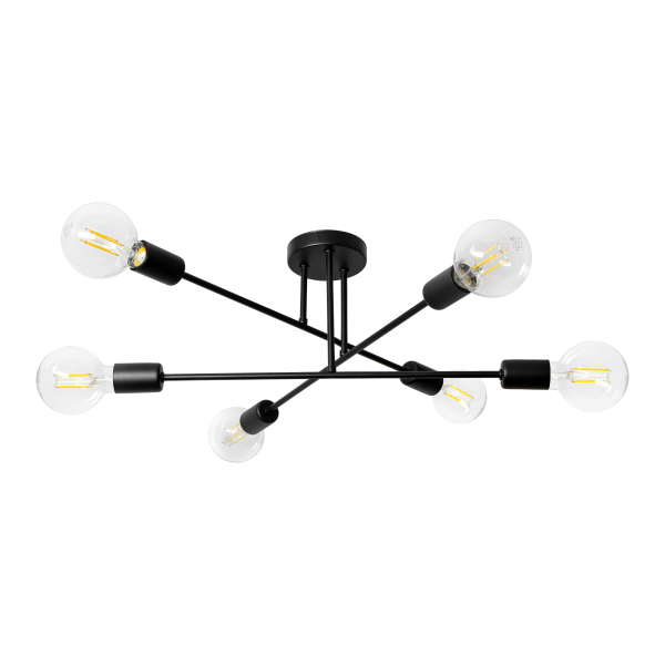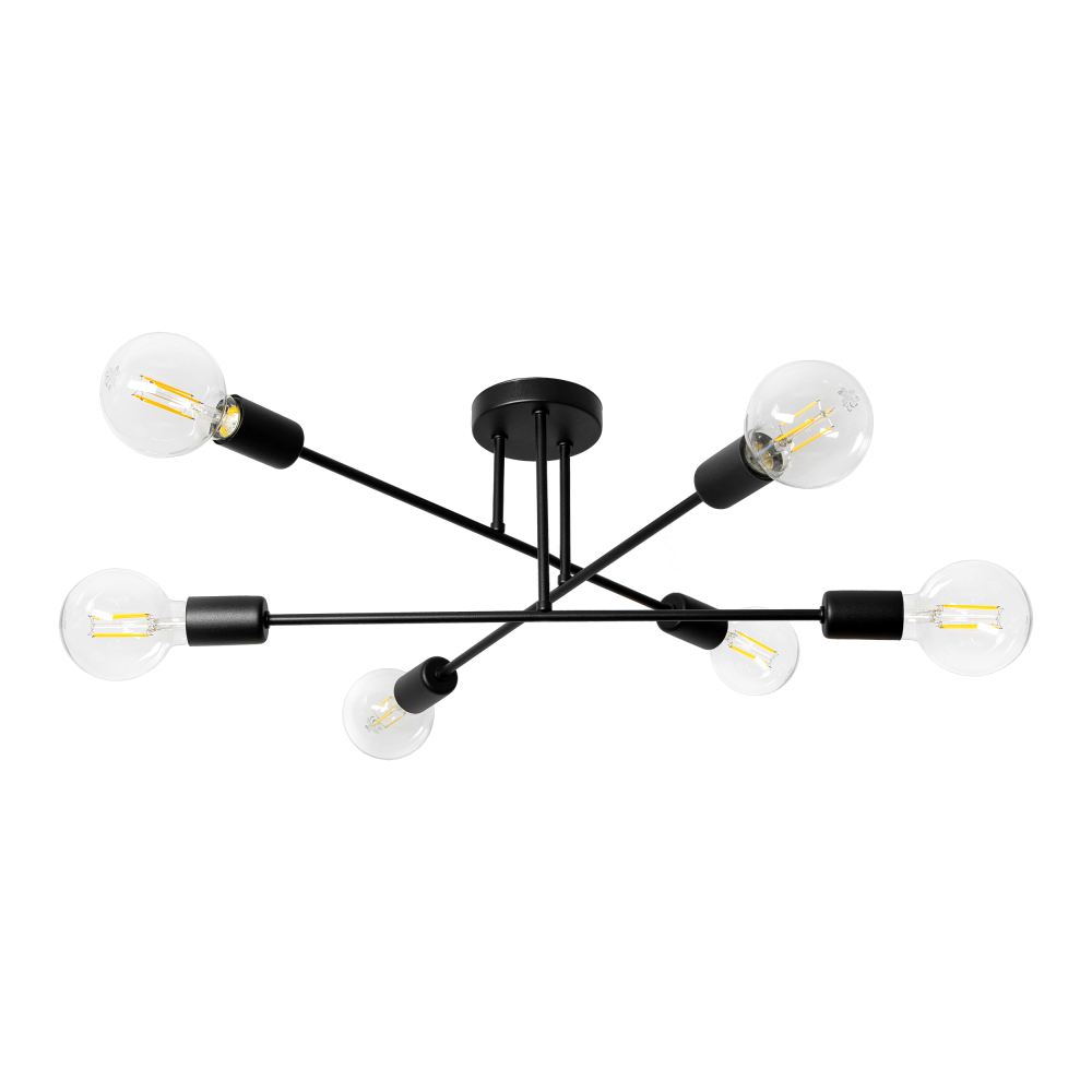 Lampa wisząca SOLO 6P to model, który składa się z okrągłej rozety i trzech poprzeczek z dwoma oprawami na każdej z nich – w sumie 6 źródeł światła. Cała lampa jest wykończona w kolorze czarnym. Dzięki temu lampa prezentuje się bardzo elegancko i nowocześnie. Surowość formy sprawia, że seria doskonale wpisuje się zarówno w wnętrza loftowe o stylu przemysłowym jak i w te utrzymane w stylu skandynawskim.