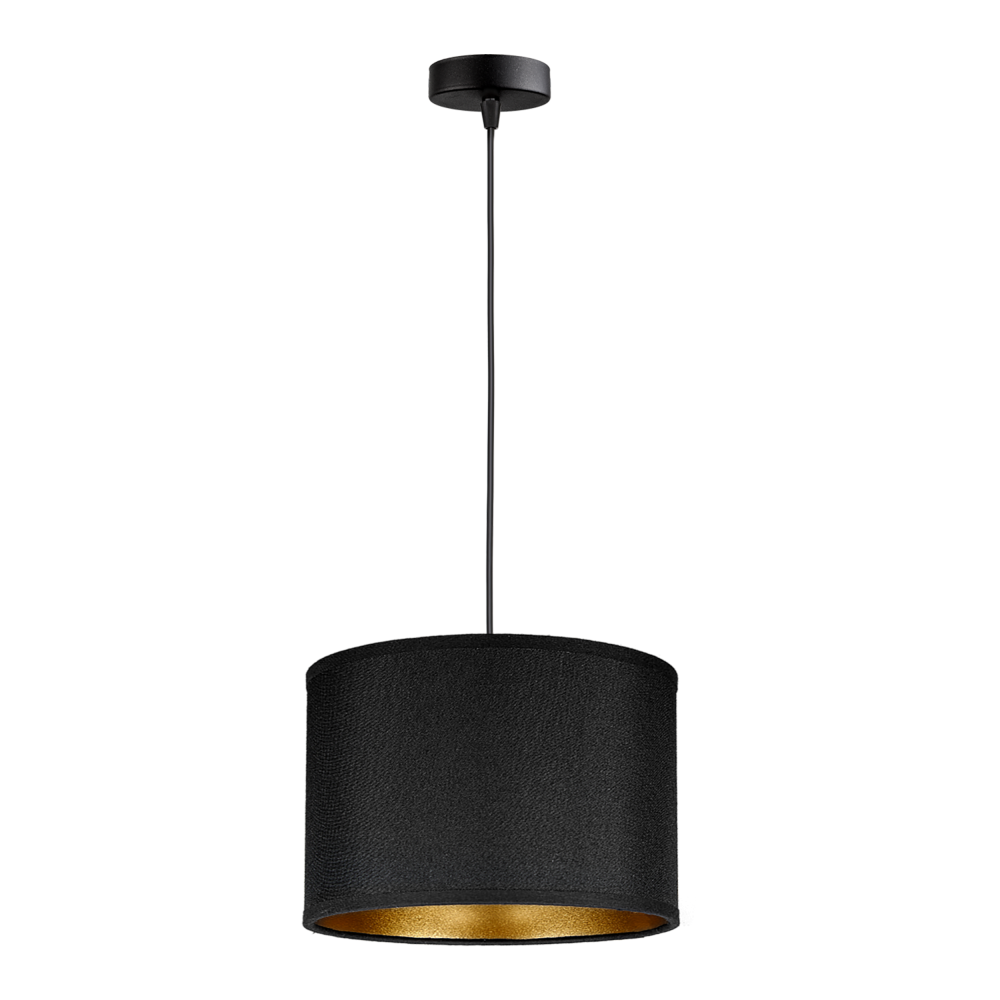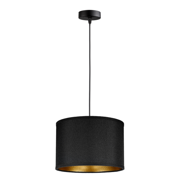 Cylindryczna lampa w kolorach czerni i złota jest eleganckim i nowoczesnym dodatkiem do każdego pomieszczenia. Jej prosta forma składa się z matowej, czarnej ramy, którą uzupełniają złote akcenty kloszy. Złote wykończenie klosza odbija światło i dodaje lampie luksusowego wyglądu i przyciągają uwagę.