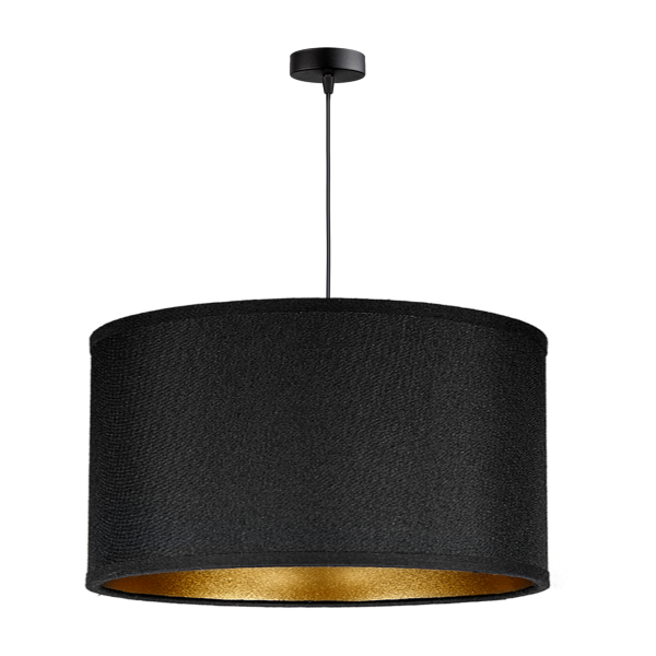 Cylindryczna lampa w kolorach czerni i złota jest eleganckim i nowoczesnym dodatkiem do każdego pomieszczenia. Jej prosta forma składa się z matowej, czarnej ramy, którą uzupełniają złote akcenty kloszy. Złote wykończenie klosza odbija światło i dodaje lampie luksusowego wyglądu i przyciągają uwagę.