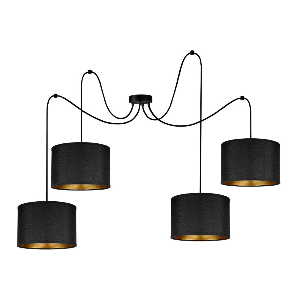 Lampa doskonale komponuje się z nowoczesnymi aranżacjami wnętrz, zwłaszcza z czarnymi i złotymi akcentami. Może być umiejscowiona w centralnym punkcie pomieszczenia lub w dowolnie wybranym miejscu, aby skupić uwagę na innych elementach dekoracyjnych. Wisząca czarna lampa to okazja na stworzenie eleganckiej i stylowej atmosfery w Twoim domu lub biurze.
