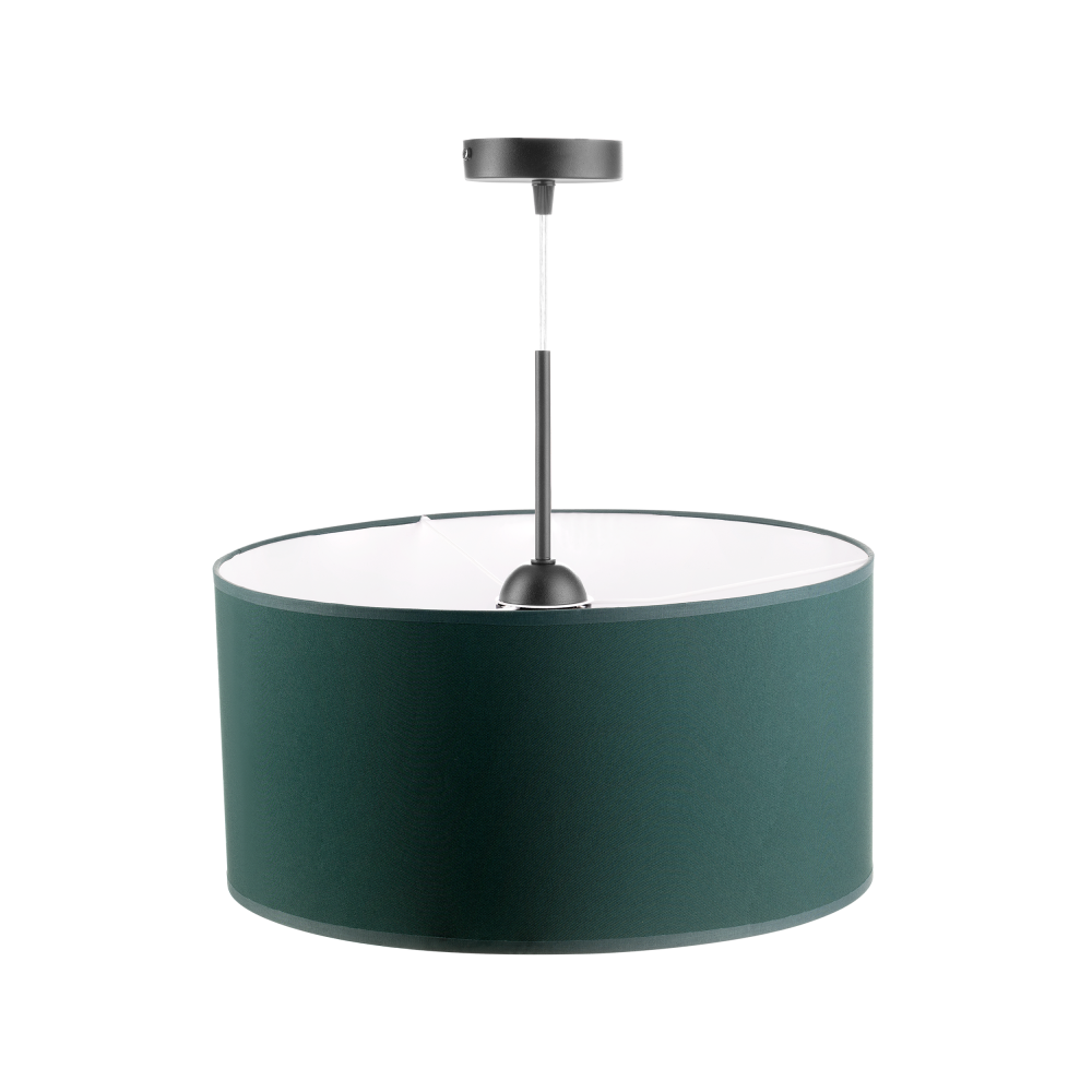 Lampa wisząca ROLLO przeznaczona jest do montażu jednego źródła światła o gwincie E27 i maksymalnej mocy 60W (brak w zestawie). Zastosowanie wymiennego źródła światła sprawia, że taka lampa może służyć nam przez wiele lat. Ponadto takie rozwiązanie pozwala na wybór rodzaju żarówki i barwy światła według własnych preferencji. Ten model ma prostą, klasyczną formę. Średnica klosza wynosi 40 cm. Stelaż lampy jest stalowy, natomiast abażur wykonany został z materiału tekstylnego. Ten model lampy należy do serii ROLLO, w której znajdziemy również krótkie lampy wiszące, kinkiety oraz lampy nocne. Szeroki wybór produktów z tej serii pozwala na tworzenie zróżnicowanych zestawów oświetlenia w zależności od rozmiaru pomieszczenia i efektu jaki chcemy uzyskać. Kolor klosza – butelkowa zieleń.