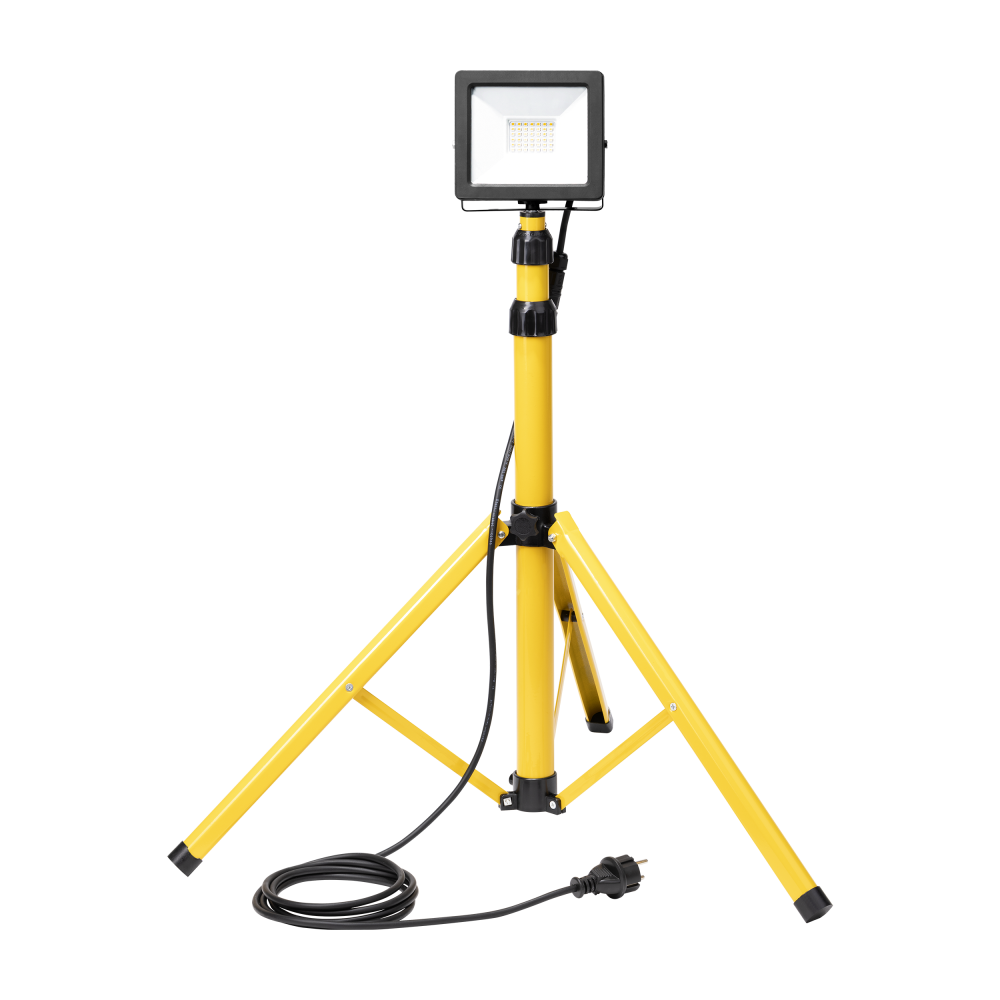 Zestaw złożony z naświetlacza, statywu i kabla zasilającego. Naświetlacz przeznaczony jest do stosowania w gospodarstwach domowych oraz do użytku wewnątrz (garaże, hale), jak i na zewnątrz pomieszczeń, jako oświetlenie parkingowe, ogrodowe, posesji, fasad, reklam, itp. Źródłem światła są diody LED SMD. Wysoki stopień szczelności IP65 zapewnia odporność na zakurzenie, zapylenie i kontakt z wodą. Teleskopowy statyw posiada płynną regulację wysokości do 150cm. Pozwala skierować światło w dowolnym kierunku. Zestaw jest bardzo prosty w montażu.