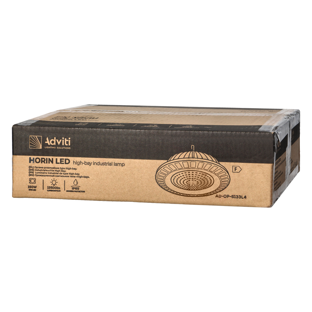 Nowoczesna, energooszczedna oprawa typu high-bay wykorzystuje technologię LED, która w znaczny sposób obniża koszty eksploatacji. Oprawy przemysłowe typu high-bay są doskonałą alternatywą dla lamp kubełkowych i standardowych lamp sodowych. Dzięki wysokiemu strumieniowi świetlnemu, oprawa doskonale oświetli wysokie pomieszczenia przemysłowe, hale produkcyjne, warsztaty, fabryki, magazyny, centra handlowe, a nawet stadiony. W przypadku dużych powierzchni wydajność świetlna i energooszczędność są kluczowe przy wyborze oświetlenia. Ta lampa świeci z mocą 13500lm i emituje światło o temperaturze 4000K. Wysoki stopień szczelności IP65 chroni oprawę przed pyłami i wilgocią oraz sprawia, że nadaje się do montażu zarówno wewnątrz, jak i na zewnątrz.