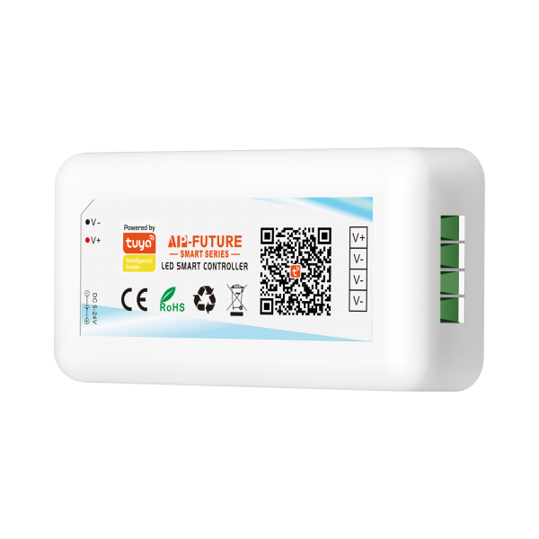 Bezprzewodowy sterownik Tuya to innowacyjne rozwiązanie umożliwiające zarządzanie oświetleniem taśm LED. Synchronizacja kontrolera z aplikacją mobilną zapewnia wygodę użytkowania (brak pilota). Instalacja dedykowanej aplikacji na telefon (Android/iOS) umożliwi sterowanie oświetleniem za pomocą asystentów głosowych, takich jak Alexa czy Google.
