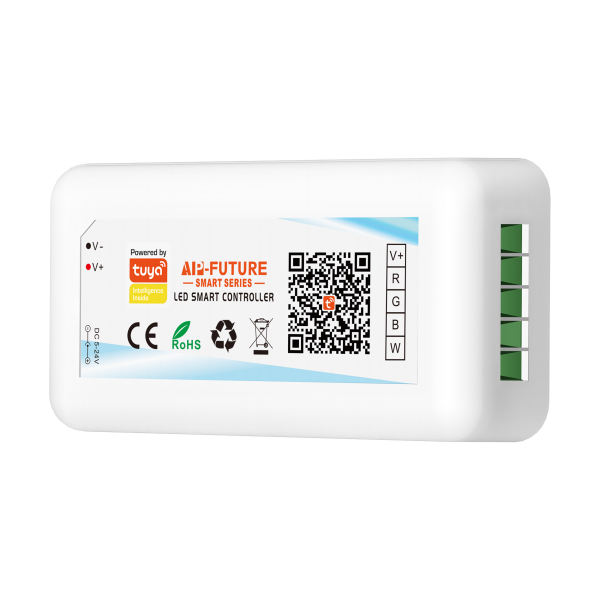 Bezprzewodowy sterownik Tuya to innowacyjne rozwiązanie umożliwiające zarządzanie oświetleniem taśm LED RGBW. Synchronizacja kontrolera z aplikacją mobilną zapewnia wygodę użytkowania (brak pilota). Instalacja dedykowanej aplikacji na telefon (Android/iOS) umożliwi sterowanie oświetleniem za pomocą asystentów głosowych, takich jak Alexa czy Google.